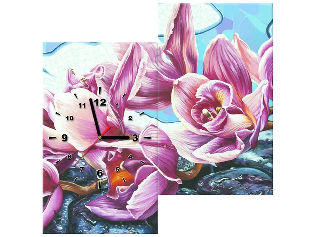 Úvod » Obrazy » Obrazy s hodinami » Obraz na plátne s hodinami Kvety na kameňoch