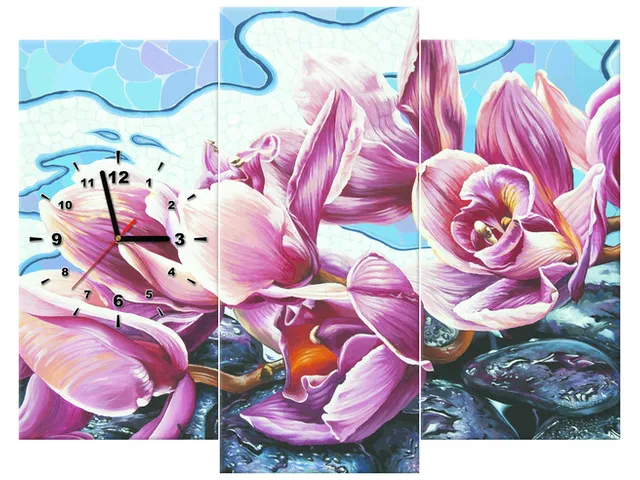 Úvod » Obrazy » Obrazy s hodinami » Obraz na plátne s hodinami Kvety na kameňoch