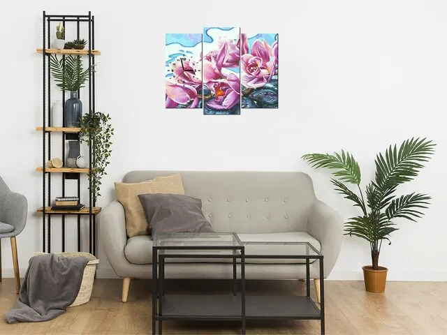 ZP4955A_3K Obraz na plátne s hodinami Kvety na kameňoch |