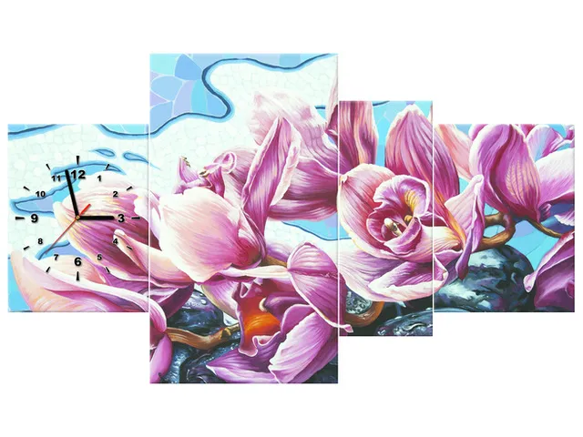 Úvod » Obrazy » Obrazy s hodinami » Obraz na plátne s hodinami Kvety na kameňoch