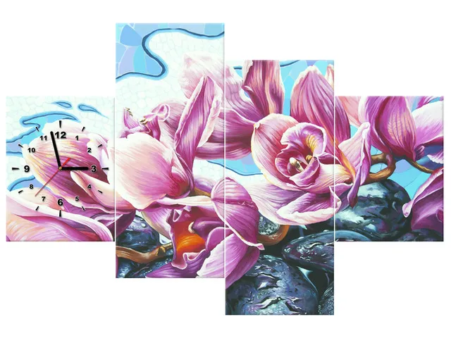 Úvod » Obrazy » Obrazy s hodinami » Obraz na plátne s hodinami Kvety na kameňoch