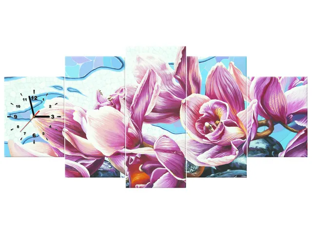Úvod » Obrazy » Obrazy s hodinami » Obraz na plátne s hodinami Kvety na kameňoch