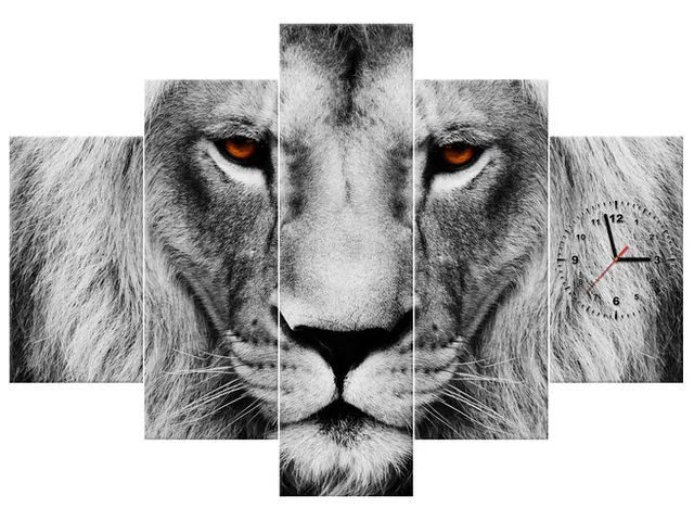 ZP1390A_2J Obraz na plátne s hodinami Leví pohľad |