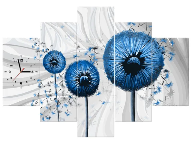 Úvod » Obrazy » Obrazy s hodinami » Obraz na plátne s hodinami Modré púpavy 3