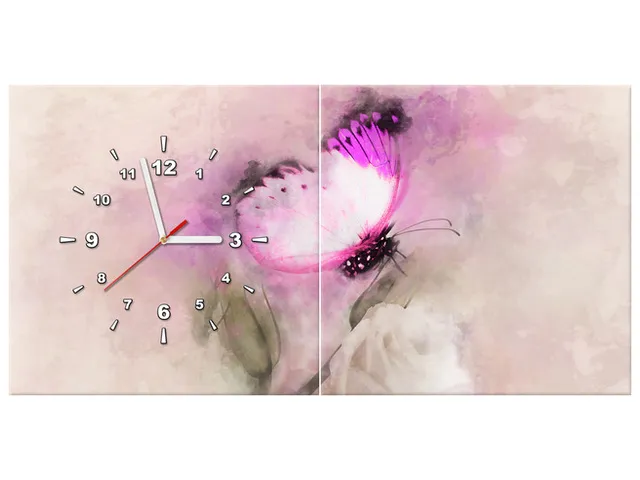 Úvod » Obrazy » Obrazy s hodinami » Obraz na plátne s hodinami Motýľ a ruža