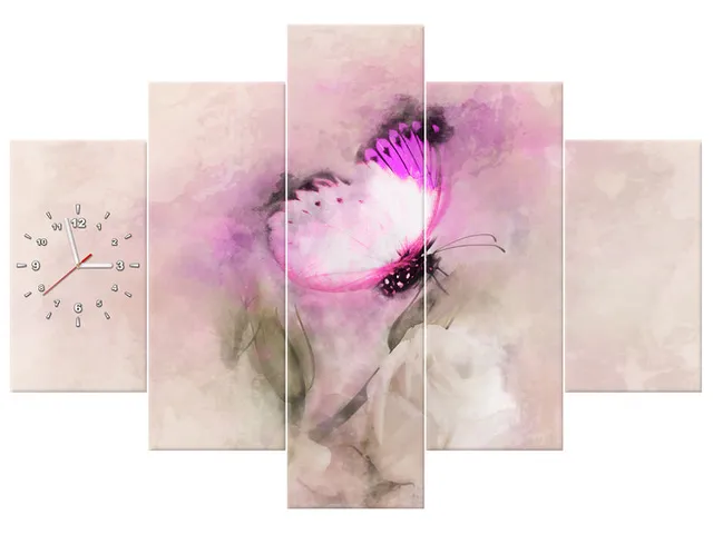 Úvod » Obrazy » Obrazy s hodinami » Obraz na plátne s hodinami Motýľ a ruža