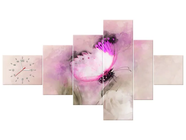 Úvod » Obrazy » Obrazy s hodinami » Obraz na plátne s hodinami Motýľ a ruža