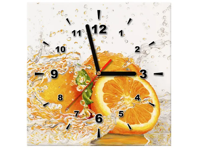 Úvod » Obrazy » Obrazy s hodinami » Obraz na plátne s hodinami Pomaranč vo vode