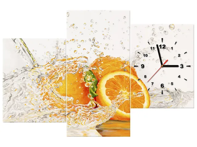 Úvod » Obrazy » Obrazy s hodinami » Obraz na plátne s hodinami Pomaranč vo vode