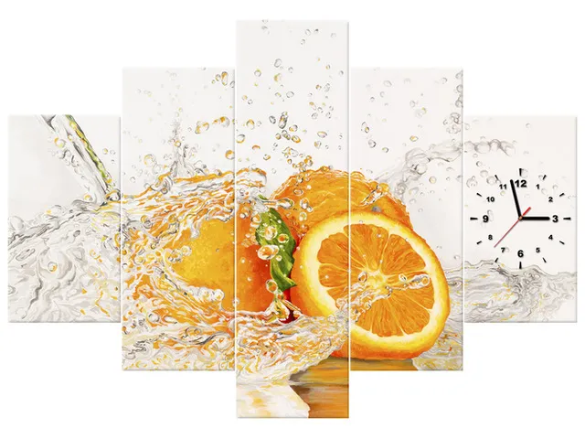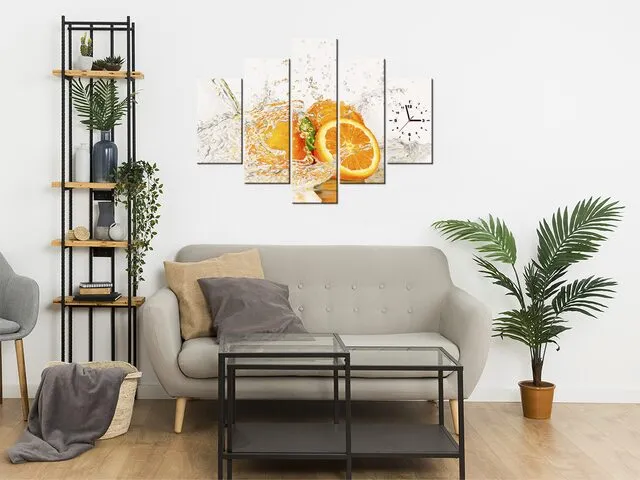 Úvod » Obrazy » Obrazy s hodinami » Obraz na plátne s hodinami Pomaranč vo vode