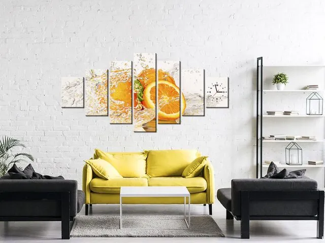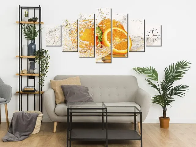 Barion Pixel Obraz na plátne s hodinami Pomaranč vo vode