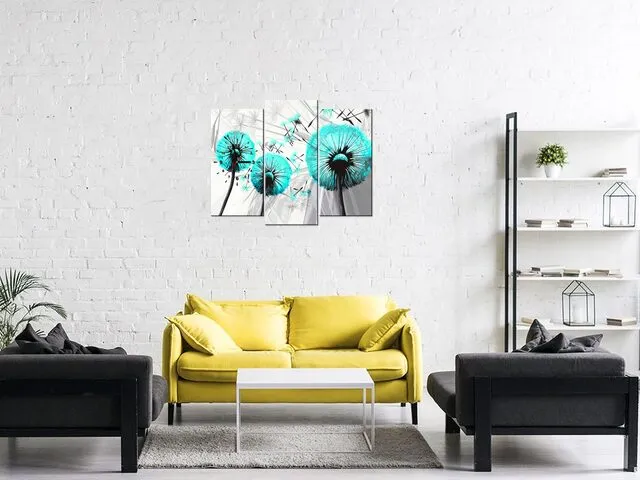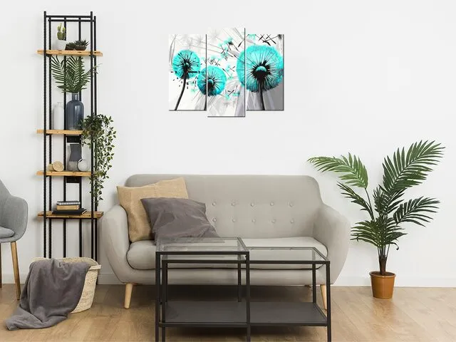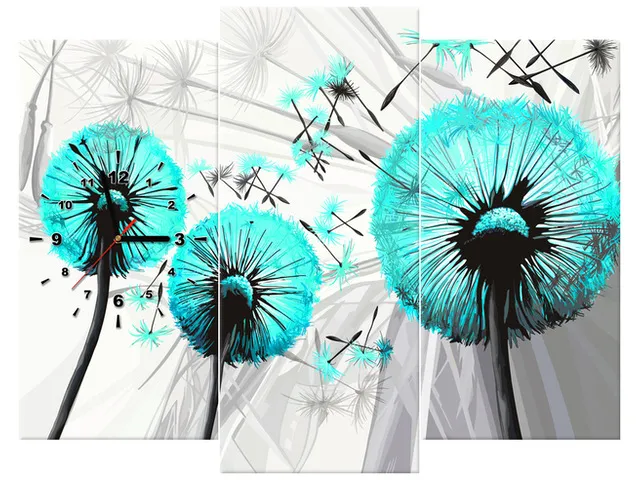 Obraz na plátne s hodinami Púpava v tyrkysovej farbe