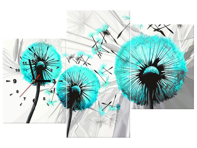 Úvod » Obrazy » Obrazy s hodinami » Obraz na plátne s hodinami Púpava v tyrkysovej farbe