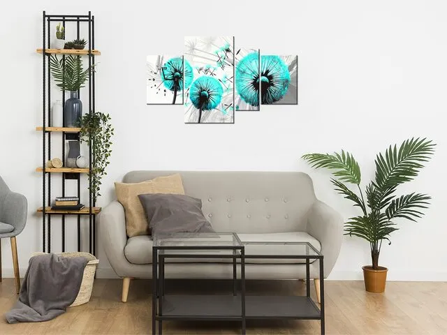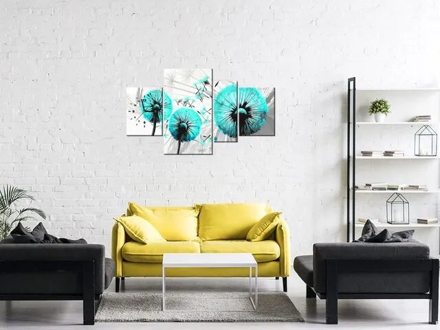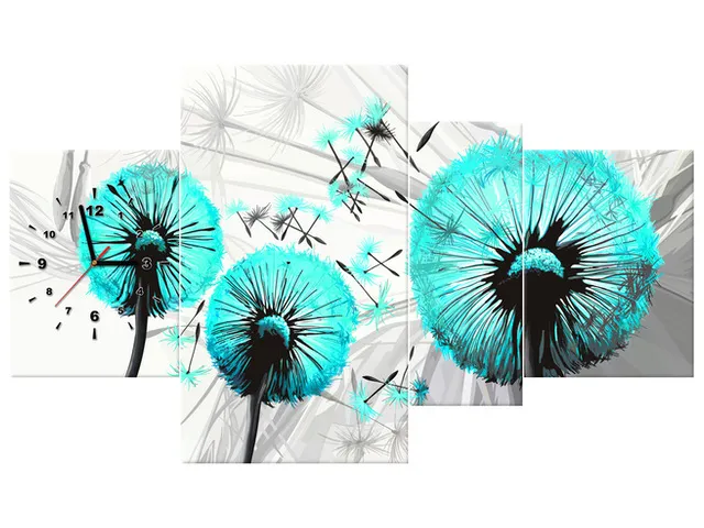 Obraz na plátne s hodinami Púpava v tyrkysovej farbe