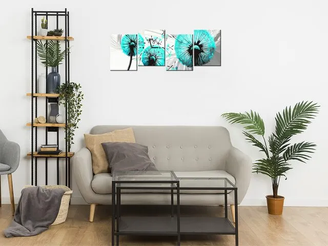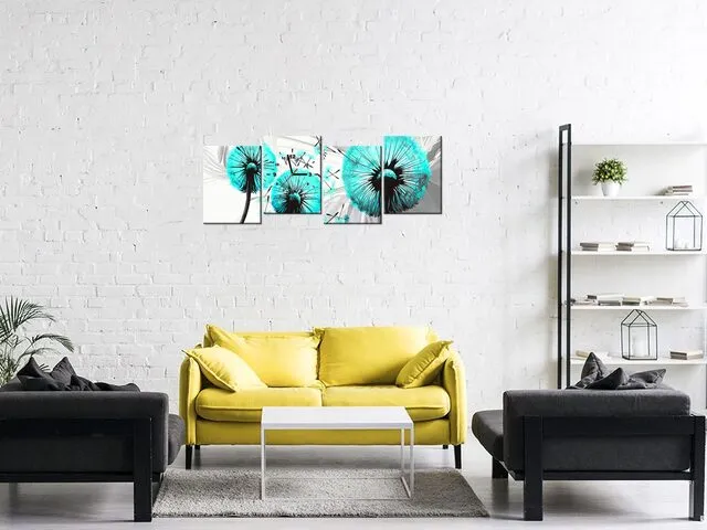 Úvod » Obrazy » Obrazy s hodinami » Obraz na plátne s hodinami Púpava v tyrkysovej farbe