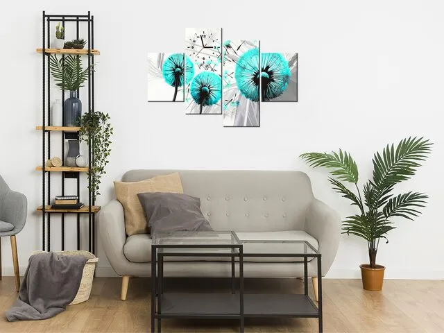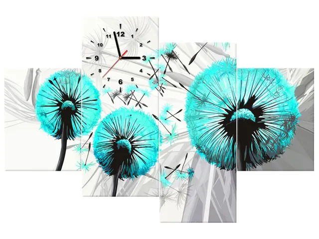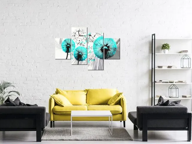Úvod » Obrazy » Obrazy s hodinami » Obraz na plátne s hodinami Púpava v tyrkysovej farbe