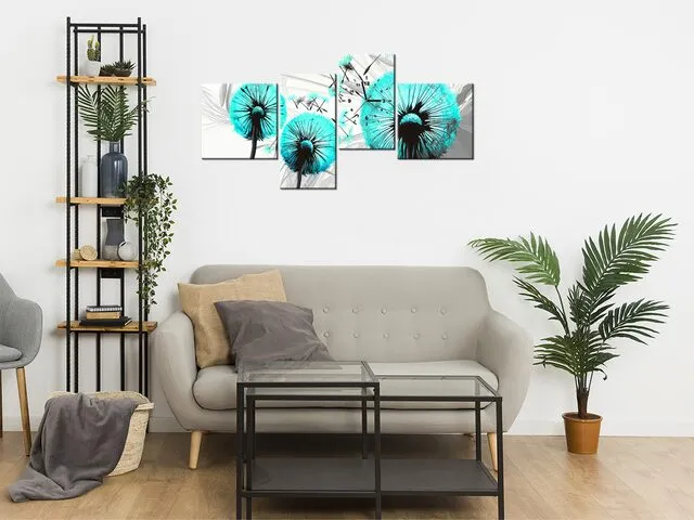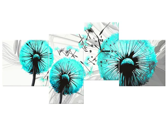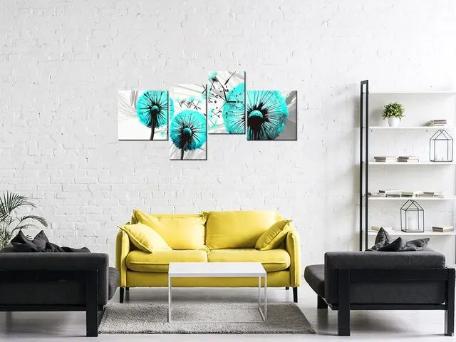 Úvod » Obrazy » Obrazy s hodinami » Obraz na plátne s hodinami Púpava v tyrkysovej farbe