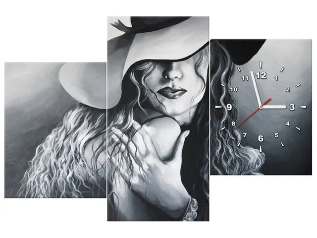 Úvod » Obrazy » Obrazy s hodinami » Obraz na plátne s hodinami Šedá dáma