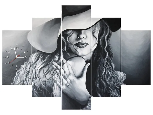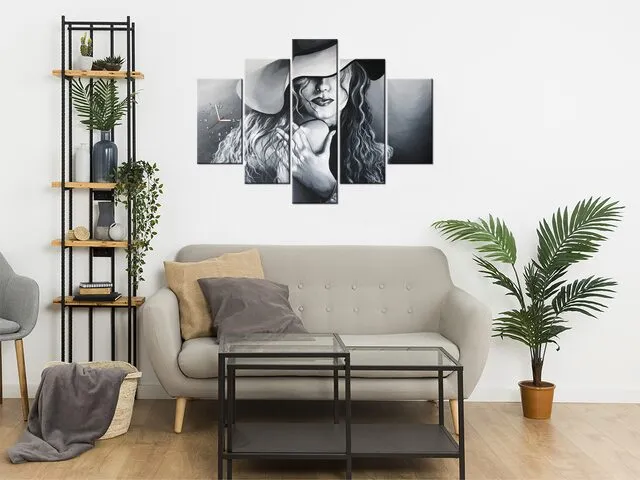 Úvod » Obrazy » Obrazy s hodinami » Obraz na plátne s hodinami Šedá dáma