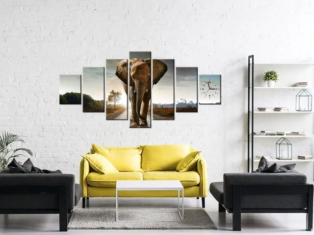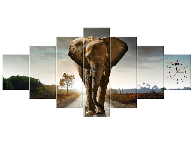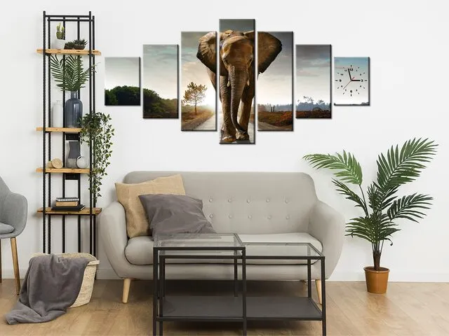 Úvod » Obrazy » Obrazy s hodinami » Obraz na plátne s hodinami Slon