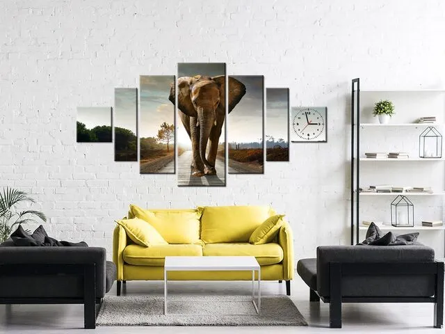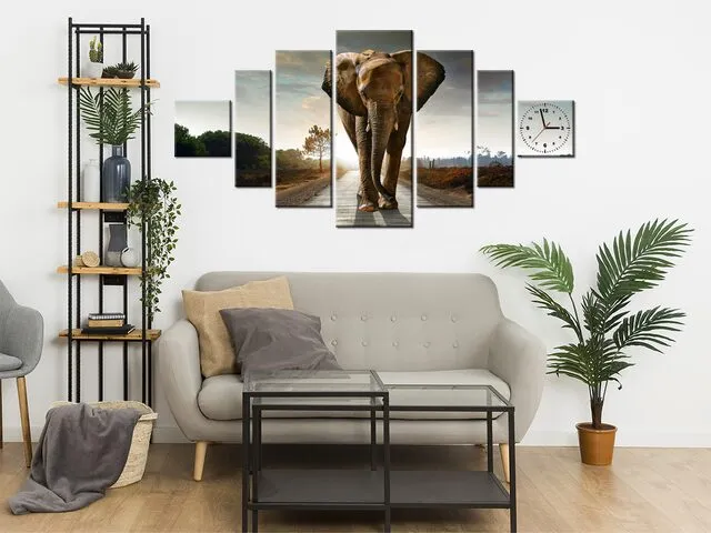 Úvod » Obrazy » Obrazy s hodinami » Obraz na plátne s hodinami Slon
