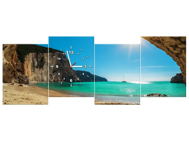 ZP3522A_3AW Obraz na plátne s hodinami pláž Porto Katsiki |