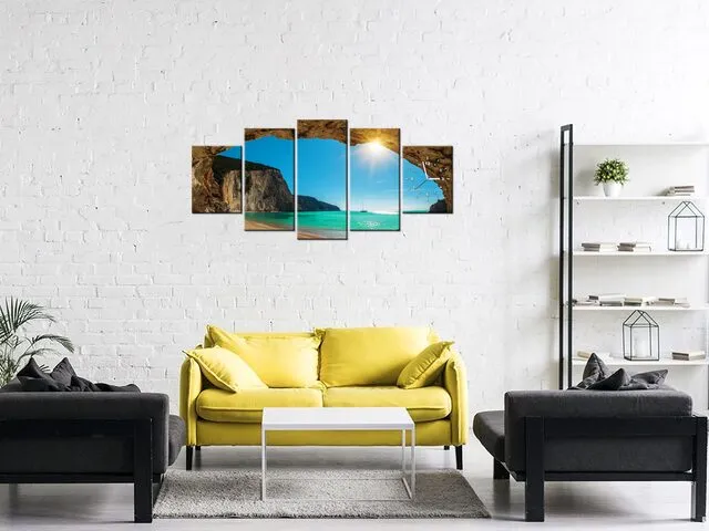 ZP3522A_4E Obraz na plátne s hodinami pláž Porto Katsiki |