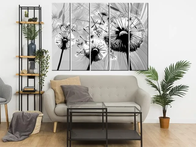 Úvod » Obrazy » Obrazy na plátne » Kvety » Obraz na stenu Biele púpavy na sivom pozadí