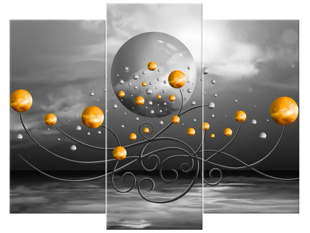 5589A_3H Obraz na stenu Oranžové gule na sivom pozadí |
