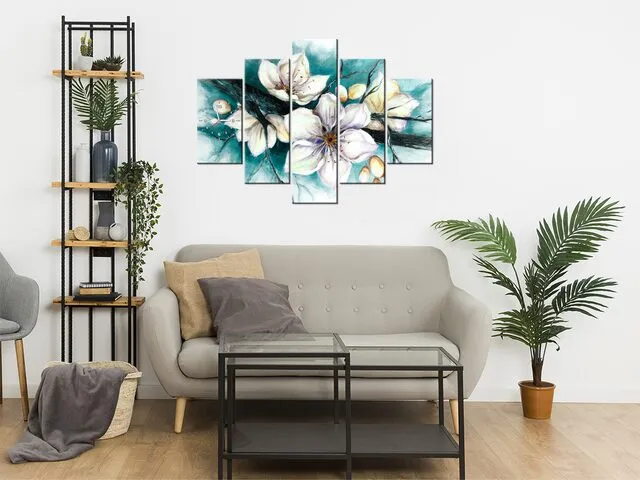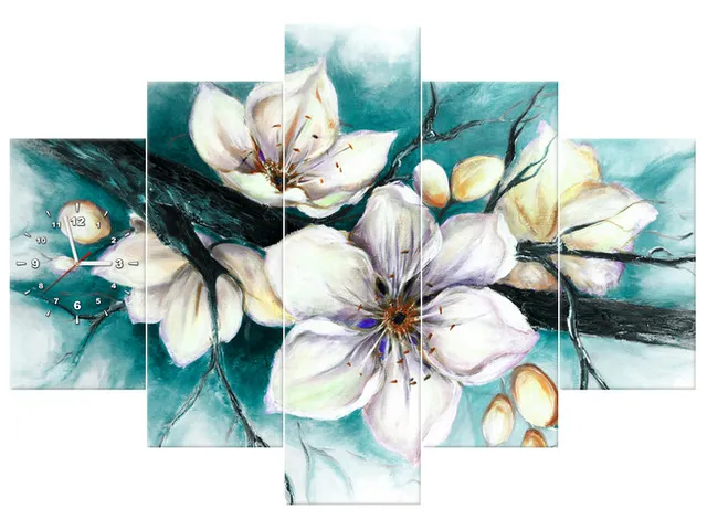 Úvod » Obrazy » Obrazy s hodinami » Obraz na stenu Puky višne tyrkysovej farby