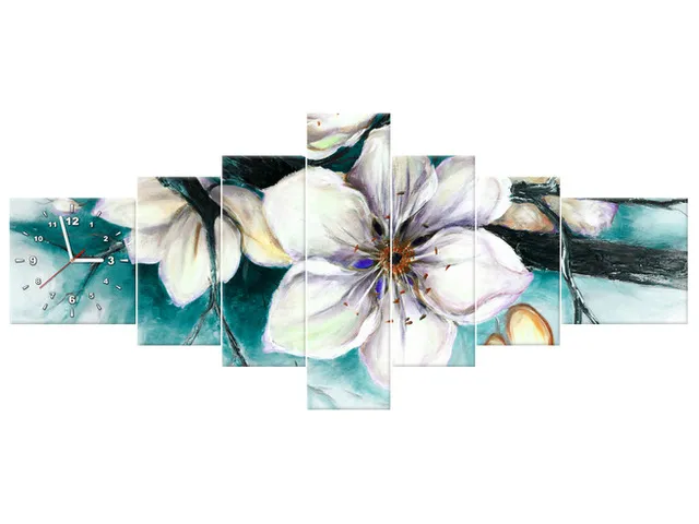 Úvod » Obrazy » Obrazy s hodinami » Obraz na stenu Puky višne tyrkysovej farby