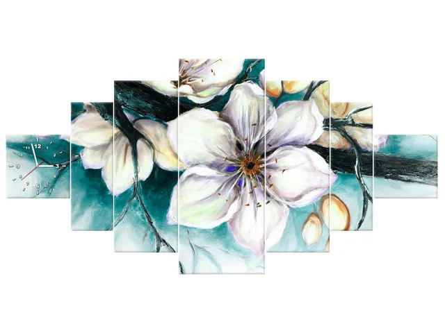 Úvod » Obrazy » Obrazy s hodinami » Obraz na stenu Puky višne tyrkysovej farby