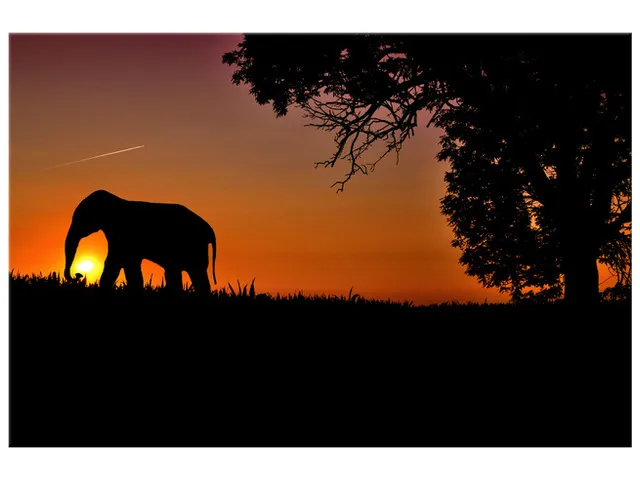 Úvod » Obrazy » Obrazy na plátne » Príroda » Východ a Západ slnka » Obraz na stenu Slon pri západe slnka