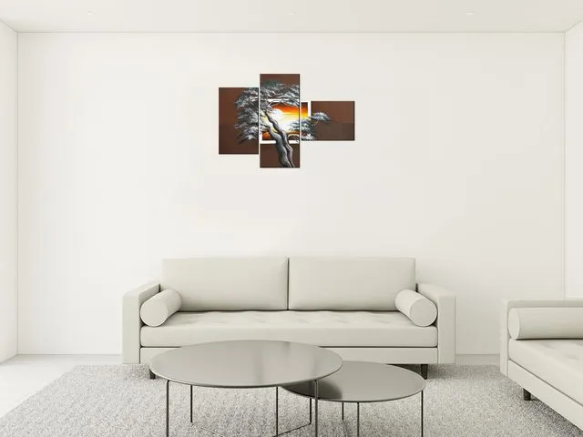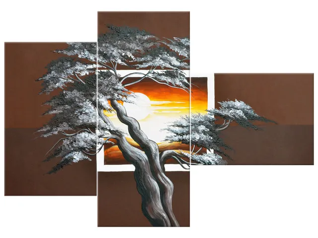 4021A_3D Obraz na stenu Strom na pozadí zapadajúceho slnka |