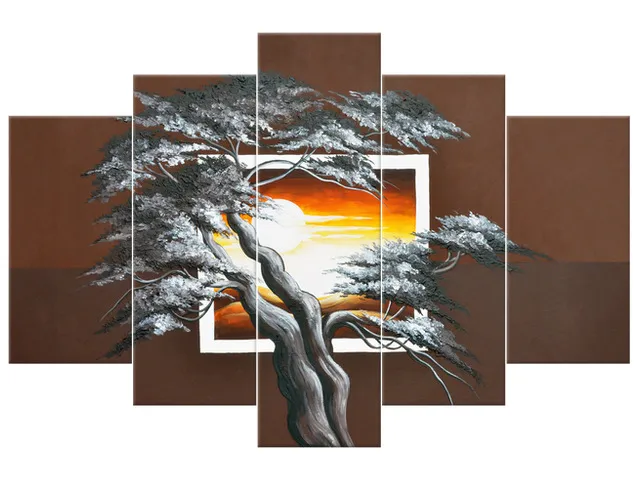 4021A_5D Obraz na stenu Strom na pozadí zapadajúceho slnka |