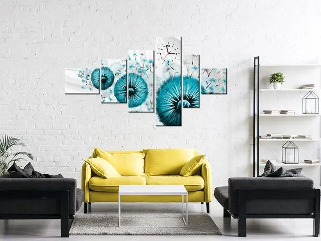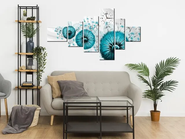Úvod » Obrazy » Obrazy s hodinami » Obraz na stenu Tyrkysové púpavy 4