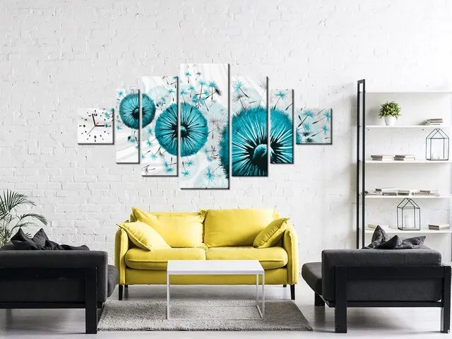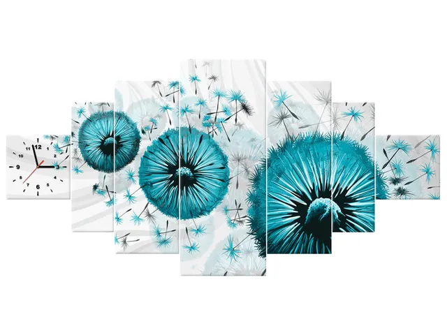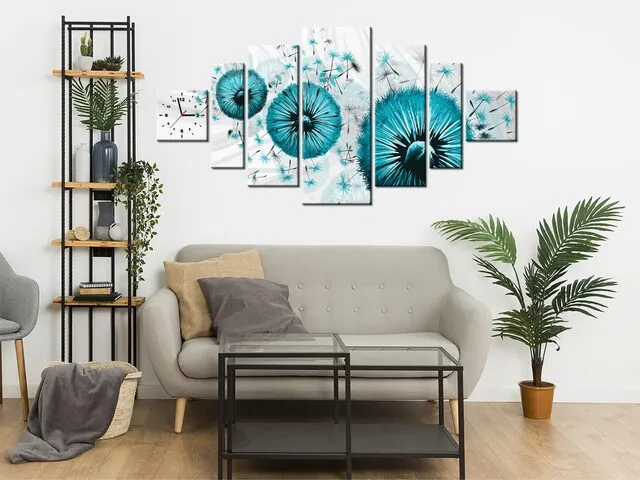 Úvod » Obrazy » Obrazy s hodinami » Obraz na stenu Tyrkysové púpavy 4