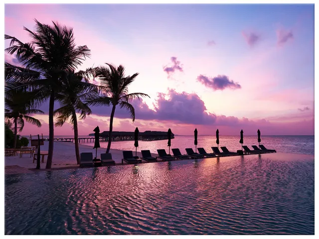 Úvod » Obrazy » Obrazy na plátne » Príroda » Obraz na stenu Západ slnka na pláži v Maledivách