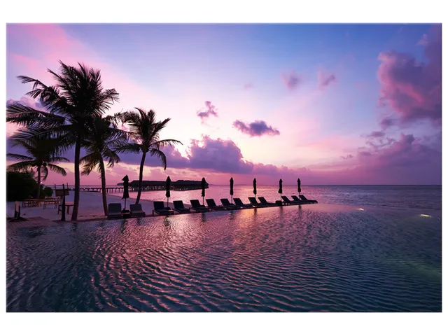 Úvod » Obrazy » Obrazy na plátne » Príroda » Obraz na stenu Západ slnka na pláži v Maledivách