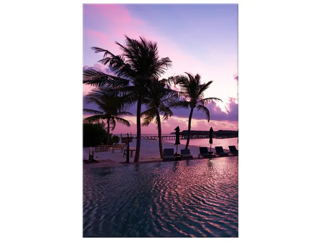 Úvod » Obrazy » Obrazy na plátne » Príroda » Obraz na stenu Západ slnka na pláži v Maledivách