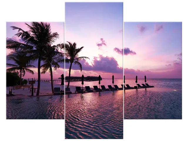 Úvod » Obrazy » Obrazy na plátne » Príroda » Obraz na stenu Západ slnka na pláži v Maledivách