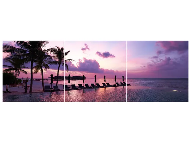 Úvod » Obrazy » Obrazy na plátne » Príroda » Obraz na stenu Západ slnka na pláži v Maledivách