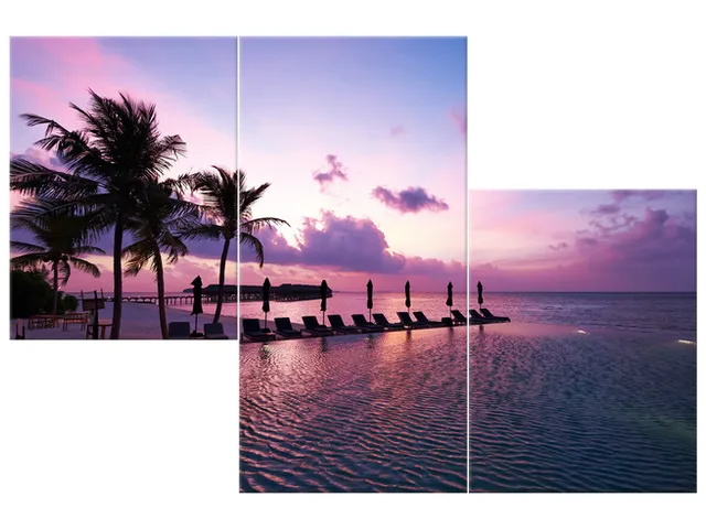 Úvod » Obrazy » Obrazy na plátne » Príroda » Obraz na stenu Západ slnka na pláži v Maledivách