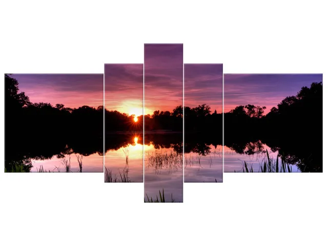 203A_5B Obraz na stenu Západ slnka uprostred kríkov |
