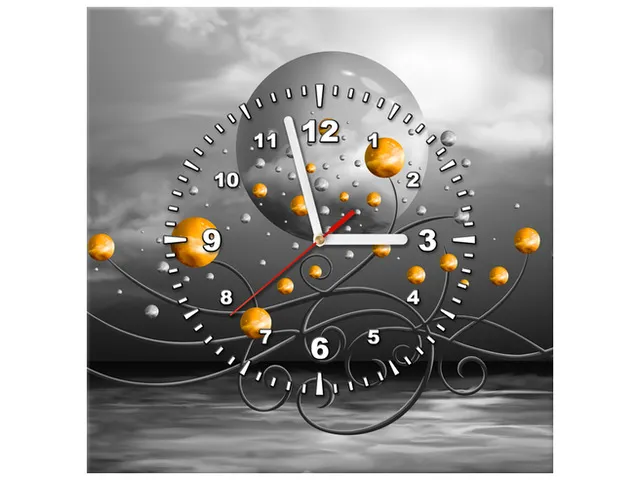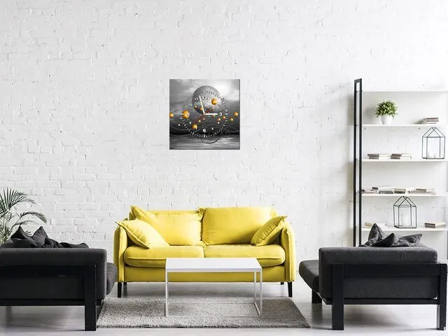 Úvod » Obrazy » Obrazy s hodinami » Obraz na stenu do obývačky - Oranžové gule na sivo pozadí