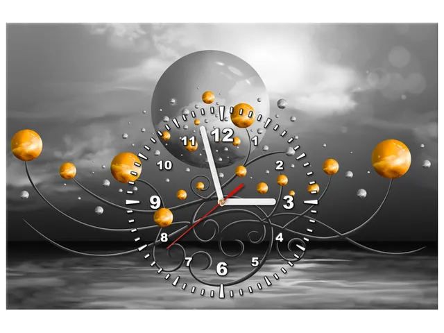 Úvod » Obrazy » Obrazy s hodinami » Obraz na stenu do obývačky - Oranžové gule na sivo pozadí