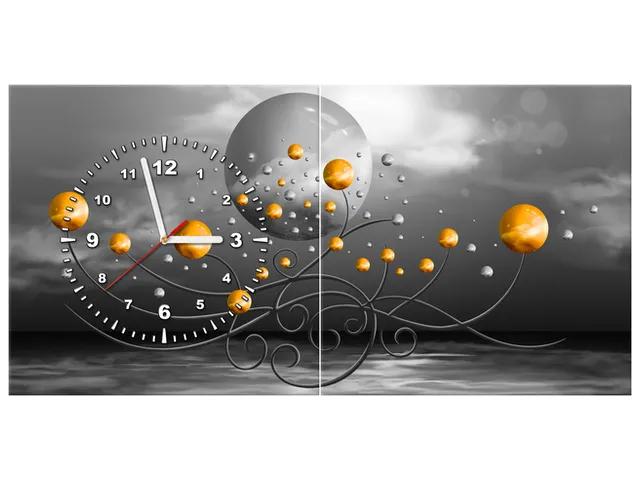 Úvod » Obrazy » Obrazy s hodinami » Obraz na stenu do obývačky - Oranžové gule na sivo pozadí