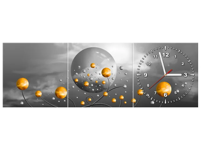 Úvod » Obrazy » Obrazy s hodinami » Obraz na stenu do obývačky - Oranžové gule na sivo pozadí