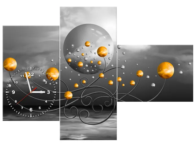 Úvod » Obrazy » Obrazy s hodinami » Obraz na stenu do obývačky - Oranžové gule na sivo pozadí
