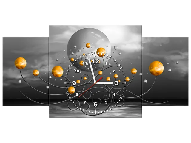 Úvod » Obrazy » Obrazy s hodinami » Obraz na stenu do obývačky - Oranžové gule na sivo pozadí
